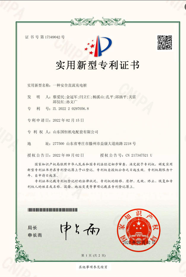 山東國恒機電配套有限公司簡      介 山東國恒機電配套有限公司是一家集新能源、高科技、智能化生產研發、制造、銷售為一體的綜合性現代化高新技術企業,公司座落在魯班故里、墨子之鄉滕州,公司始建于2005年,注冊資本1億元,擁有各類中、高級專業技術人員100余名。主營業務涉及高科技智能電力裝備、新能源儲備輸送,220kv及以下輸變電工程勘察設計、制造、銷售、安裝、售電和智能充電樁能效運維,并從事生產制造交直流充電樁設備、成套開關設備、各型號高低壓開關柜、箱式變電站等電氣設備,是棗莊地區唯一一家國資入股的新能源高端品牌企業。公司擁有獨立… 【查看更多】